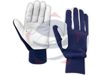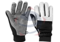 Cross country gloves constructed with cowhide, padded palm, wind-protect fabric with elastic on backhand, shirred wrist