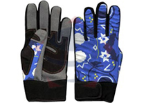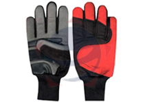 Cross country gloves made of artificial leather palm, polyester fabric with foam lining at back, stitched elastic and wrist