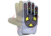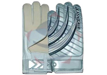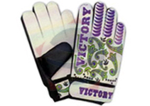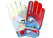 Soccer goal keeper gloves constructed with latex foam on the palm, PU top with PVC design back, velcro strap closure