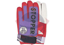 Soccer goal keeper gloves made in latex rubber on the palm, pimpled rubber on back with elastic, velcro strap